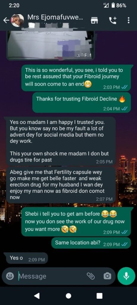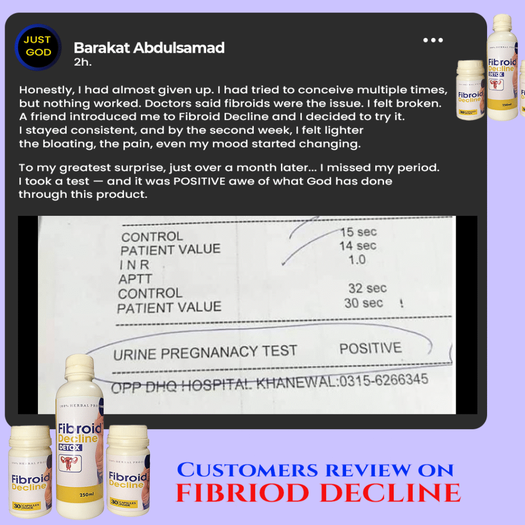 Now, I hold my first child close, a living proof of my strong belief and the power of the herbal remedy. I’m even expecting a second child now, and I’m thankful for Fibroid Decline medication that turned my pain into happiness.